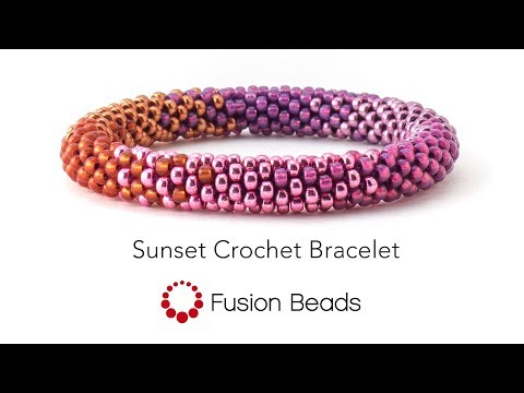 Learn how to create the Sunset Crochet Bracelet by Fusion Beads - Glass Bead Bracelets Nepal - Learn how to create the Sunset and Seabreeze Crochet Bracelets using Miyuki Duracoat Japanese Seed Beads and beaded crochet rope technique.