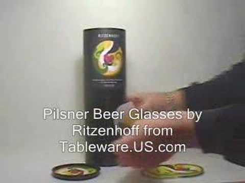 Ritzenhoff Pilsner Beer Glasses from Tableware.US.com - Ritzenhoff Beer Glass - Ritzenhoff Designer Pilsner Style Beer Glass with Matching Coaster in Gift Box. These beautiful German Designer Pilsner Style Beer Glasses feature baked ...